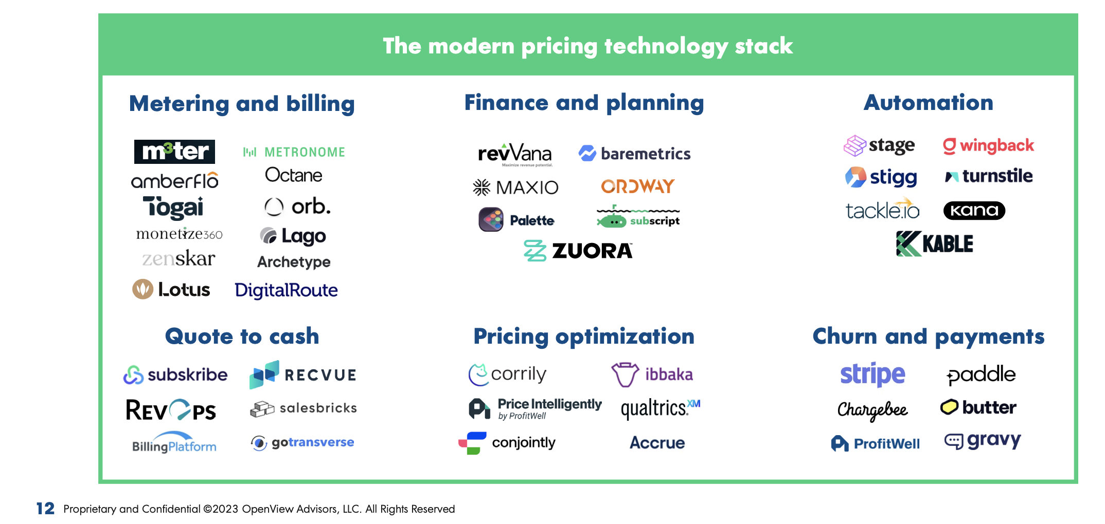 According to OpenView, there’s a corollary to hybrid models: “As pricing gets more complex, we’re seeing the rise of the modern pricing tech stack,” the VC firm wrote. But before we look into this framing, let’s take a step back.
