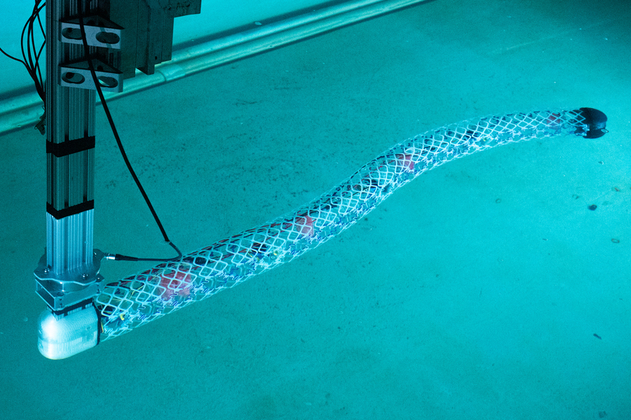 This is one of the guiding principles behind MIT’s recent rethink of its underwater, snakelike aquabots. The robot is largely hollow, built of modular voxels that can be assembled to create systems that are rigid in certain directions and soft in others, combing stiff and flexible elements.