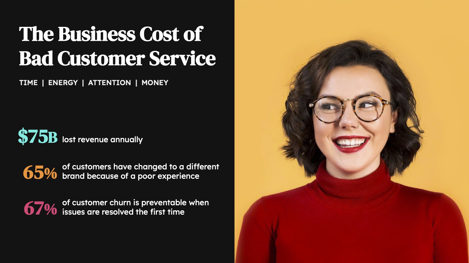 The problem of bad customer service costs a lot of money. There’s no argument that that’s a huge problem. Forethought elegantly hints at its market sizing here, along with the problem (and a little about its value proposition).