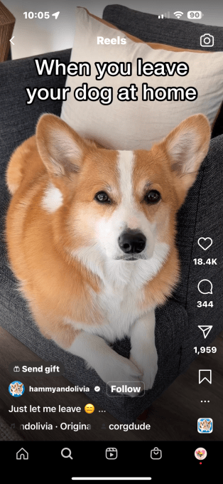 When available, you’ll see the option to “Send Gift” above the creator’s username on a Reel, as can be seen with early tester Hamilton & Olivia.