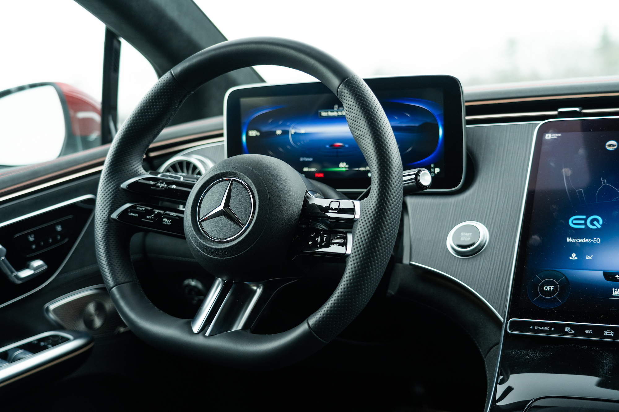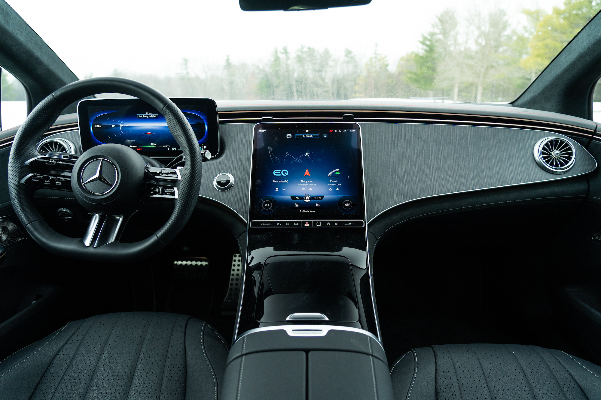 The EQE you see here does not have the epic Hyperscreen dashboard, with displays that run virtually the entire length of the dashboard; I didn’t miss it.