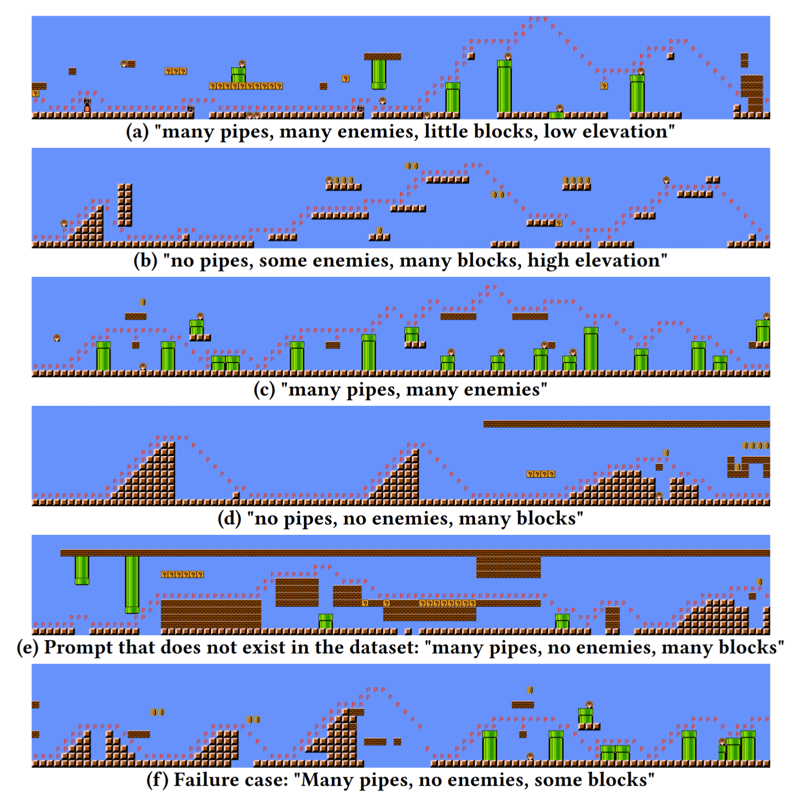 The labeled input also made it so that the model can understand natural language prompts, like asking it to make a level with “lots of pipes and lots of enemies,” or “many blocks, high elevation, no enemies.”