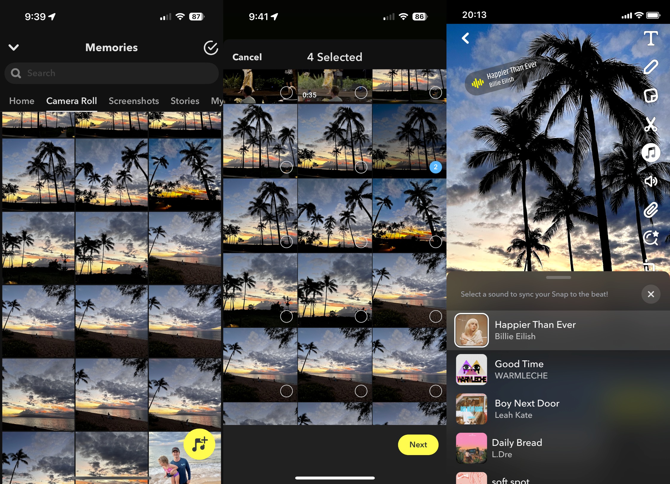 Snapchat is also rolling out a feature that lets users create montage videos that are automatically in rhythm to the beat of audio tracks from the Sounds library. Users can select between 4-20 photos/videos from their camera roll. The feature is rolling out globally on iOS and coming to Android in March.