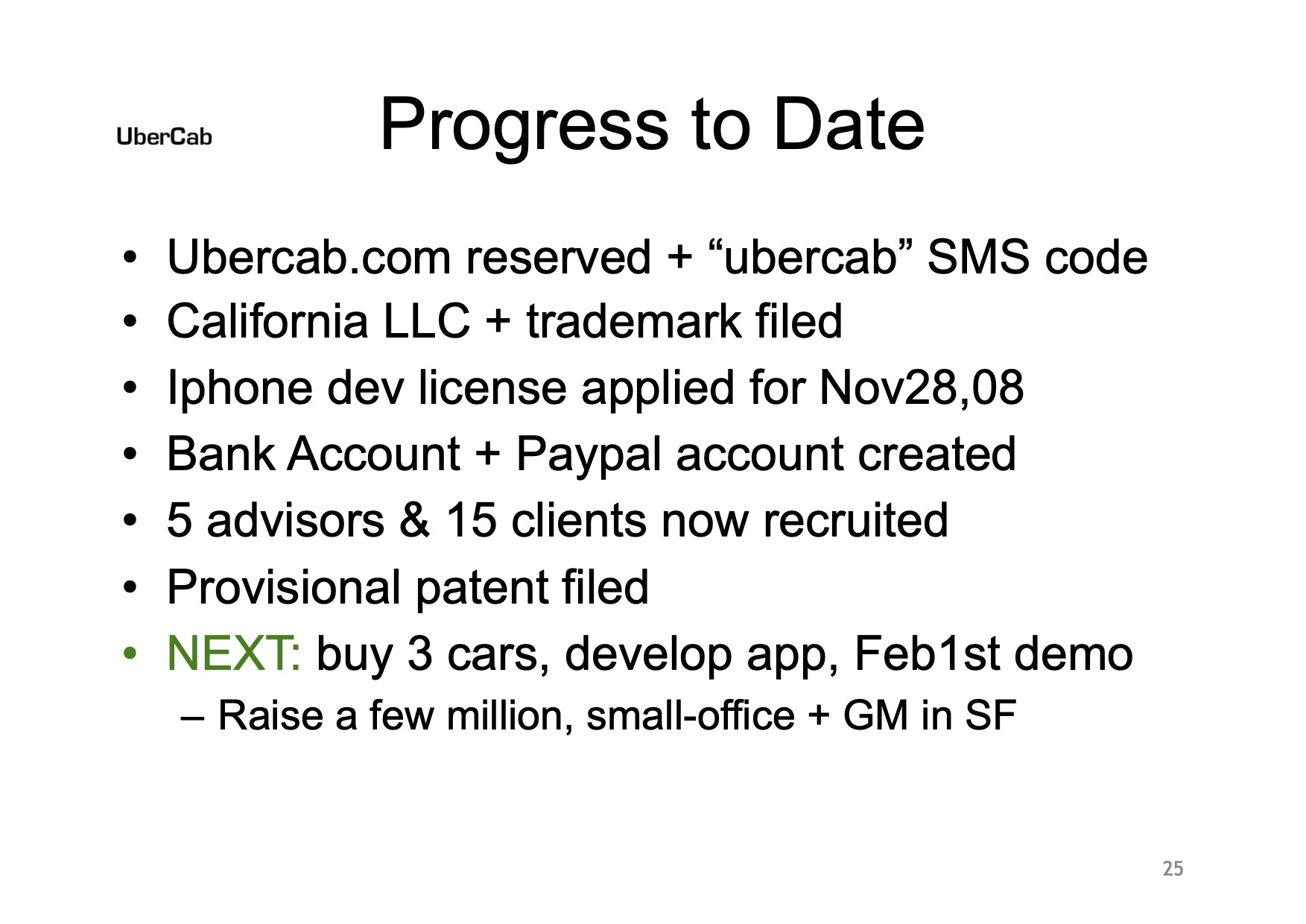 On the bright side, founders, it’s extremely likely that literally anybody reading this will have more impressive traction than Uber did when it raised its first round of financing.