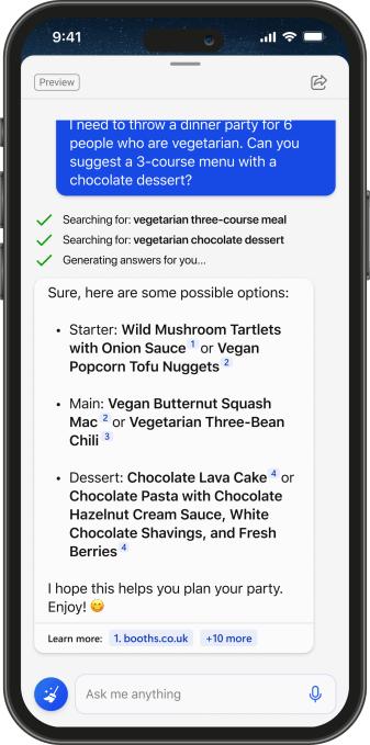 - Two weeks after launching the new AI-enabled Bing on desktop, the new Bing became available in the Bing mobile app and through Microsoft’s Edge browser for Android and iOS. Skype, Microsoft’s messaging app, also now allows you to bring Bing into a text conversation to add additional information with the @Bing command. Bing’s AI has seen some drama since its launch as users trolled and tested the AI’s limits, which pushed Microsoft to adjust some parameters around things like the length of conversations and other things. Unfortunately, that means the AI is now restricting users to six turns per conversation and 60 total queries today.