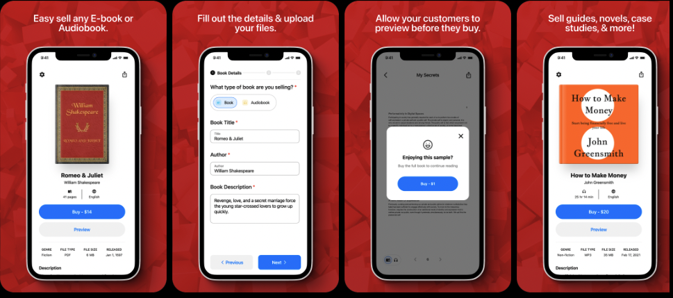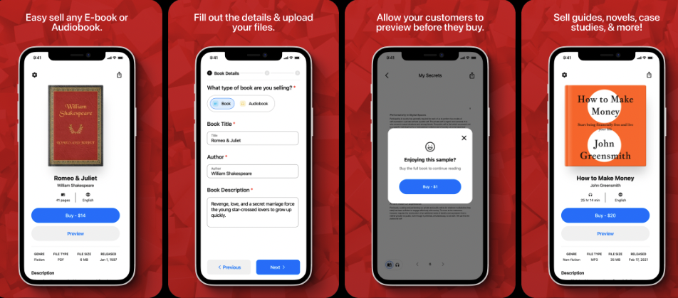Customers can download their purchase and view it via Koji’s native reader and audio player. They can also choose to download and open files in their preferred e-reader like the Kindle app or as an EPUB, PDF or chapterized audio file.