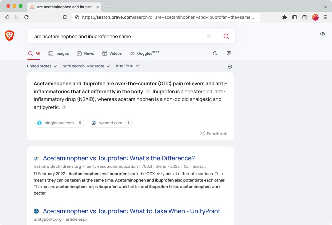 The summary feature is available to all Brave Search users on desktop and mobile — accessible through any browser. In the examples given by the company, it can summarize results for queries like “are acetaminophen and ibuprofen the same” through medical resources or “what happened in East Palestine Ohio” through news links.