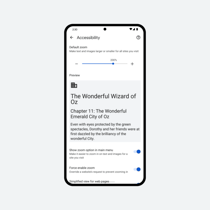- Google announced new Android features at Mobile World Congress this week, alongside updates for Chromebook and Wear OS. Among the changes, Google said Fast Pair will soon work with Chromebook to connect headphones already configured with an Android device; expanded noise cancellation for Google Meet on more Android devices; a Google Keep widget for Home screens; the ability to use a stylus or touch the screen to annotate PDFs in the Google Drive app for Android; and a way to increase the text size in Chrome up to 300% while preserving the layout. Wear OS will receive two new sound and display modes to improve watch accessibility.