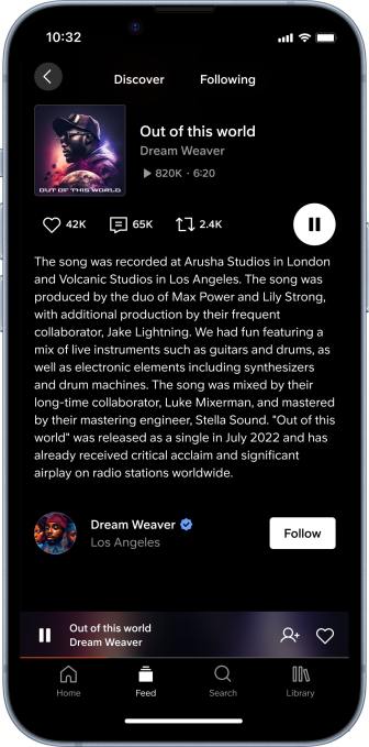 Importantly, SoundCloud is rolling out 30-second previews across both Discover and Following pages. Artists can select their own clip to highlight or rely on Musiio’s AI tech — a startup SoundCloud acquired last year to improve discovery.