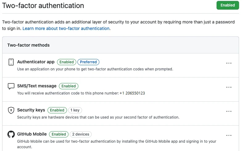 GitHub users can choose their 2FA mechanism from SMS, physical security keys, third-party authenticator apps, and the GitHub mobile app, while GitHub advises that people should have more than one 2FA method activated as a fail-safe measure.
