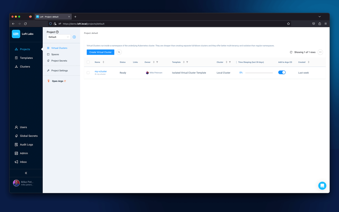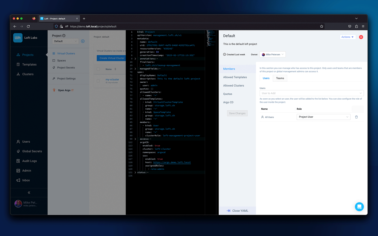 Also new is the deep Argo CD integration as well as the ability to share versioned templates for virtual clusters, spaces and apps across an enterprise.
