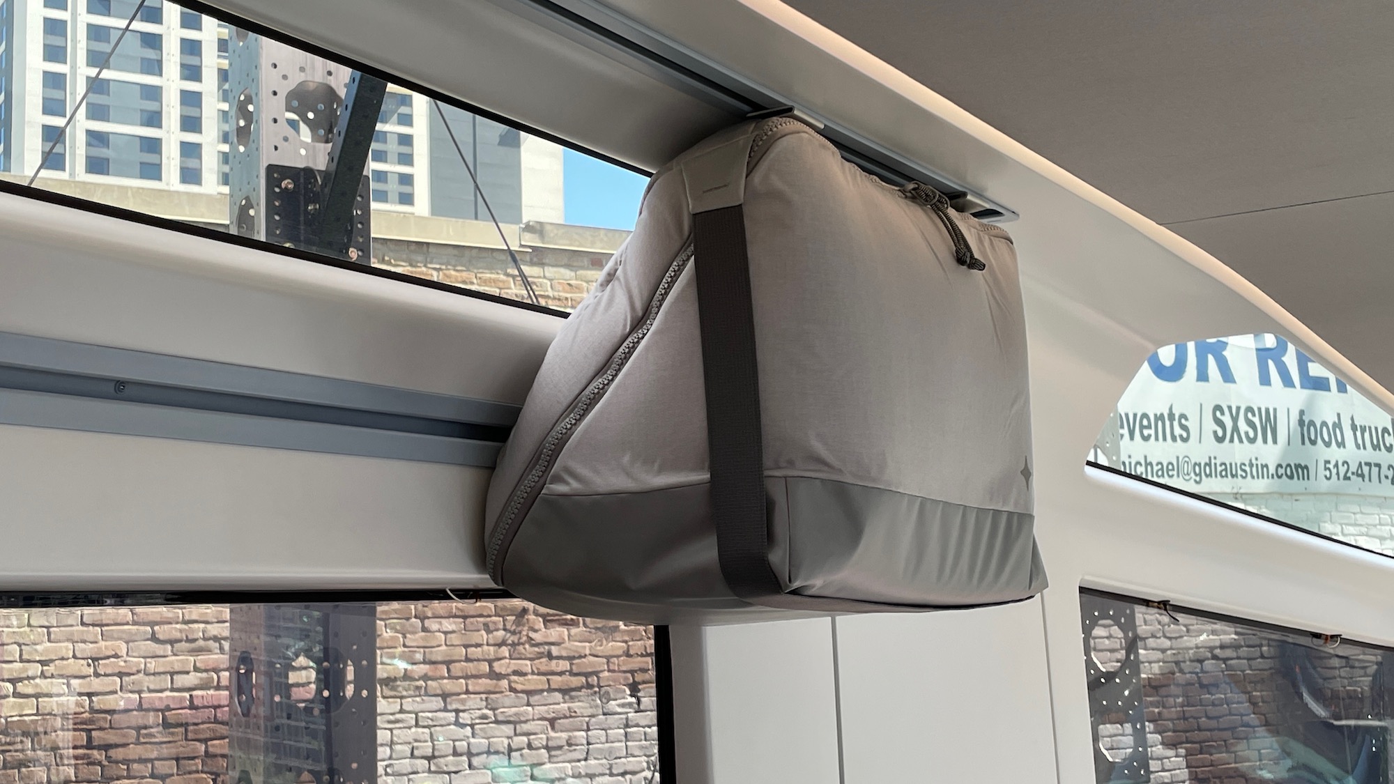 Above the bench seating is a rail system that can be used for storage as well. Lightship designed a zippered storage bag that is secured on the rail system. Kraus said it’s configurable though, and could be used to hold a surfboard, fishing pole or other items.