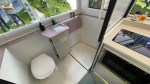 At the end of the L1 is the bathroom, which includes a toilet, collapsible shelf and shower. A large mirror, which spans the width of the bathroom, can be pushed open like a window. (Yes, you’d probably want to be in a secluded area if you showered with this open.)