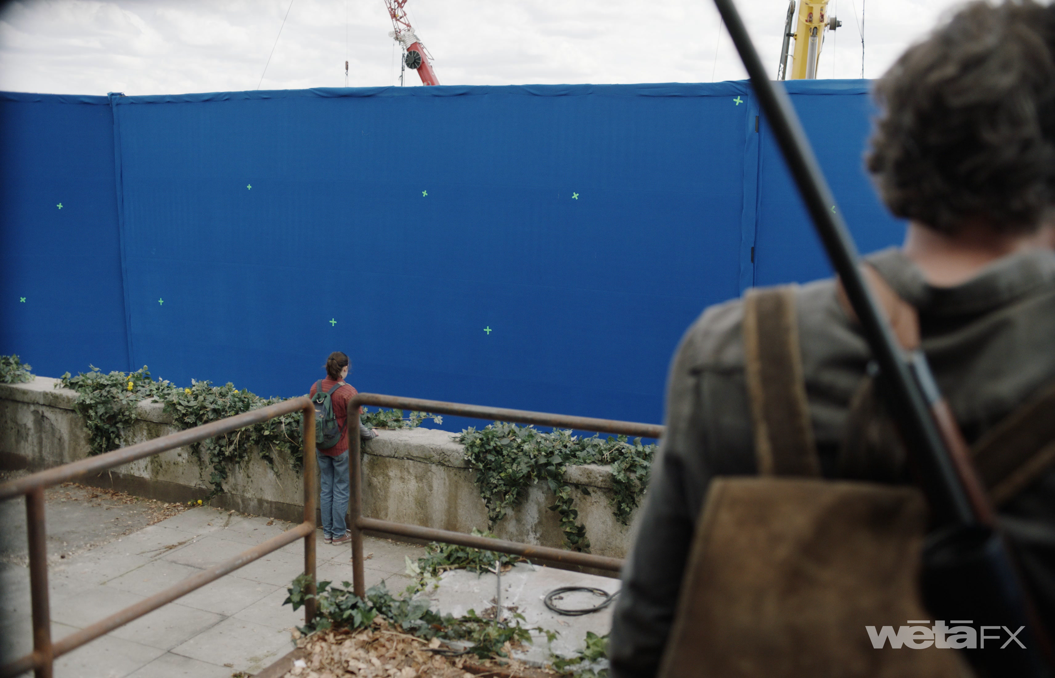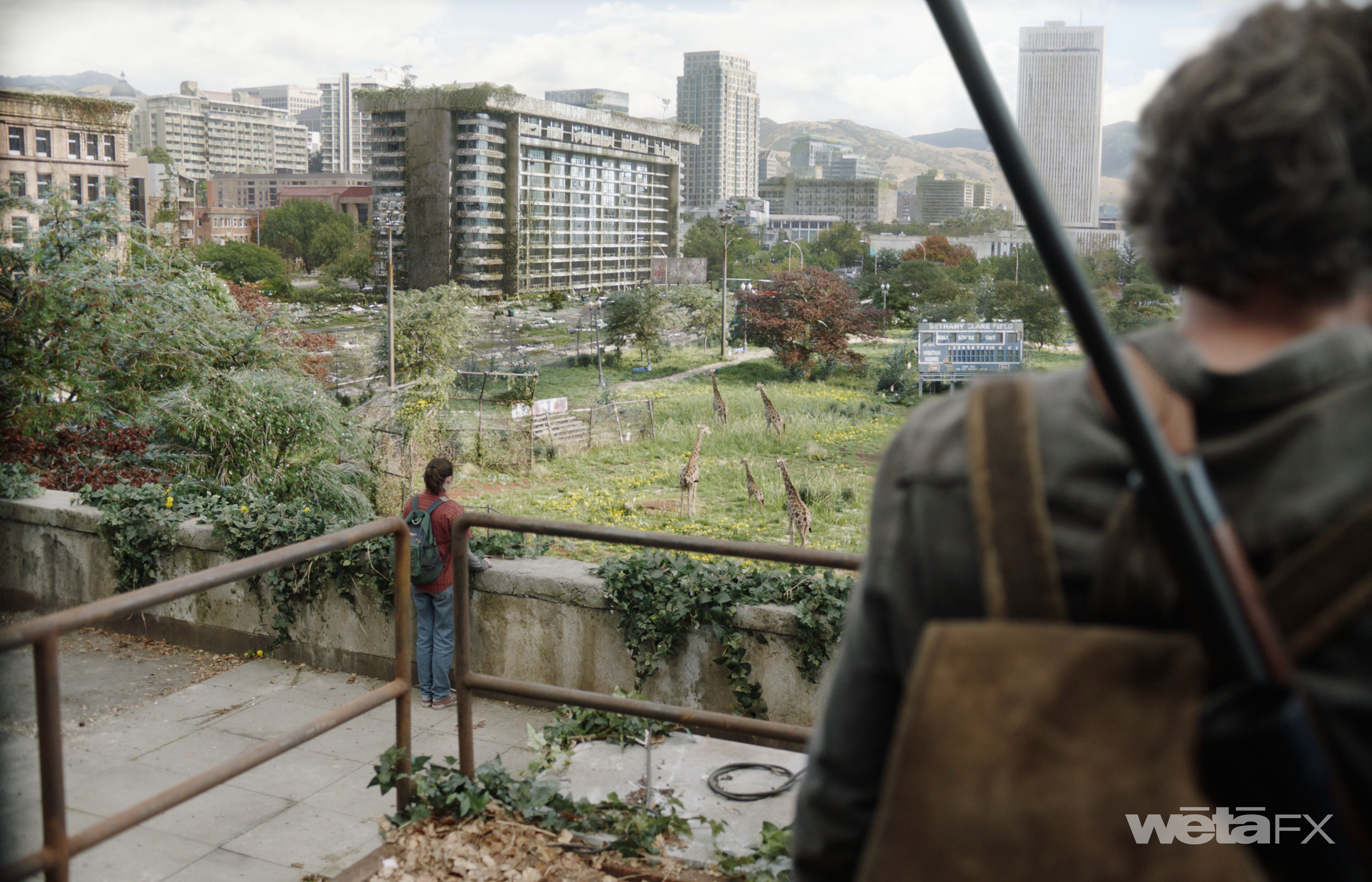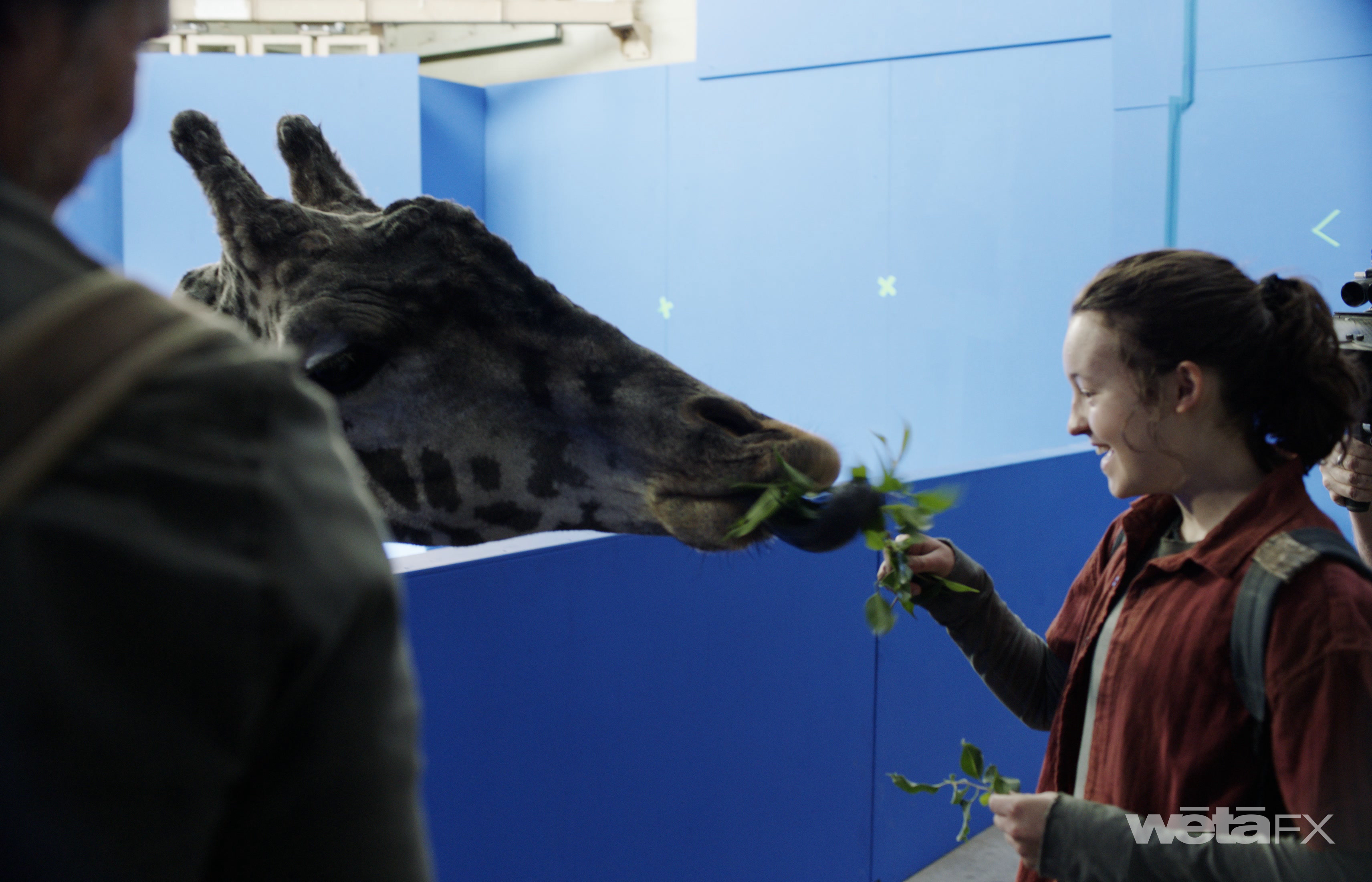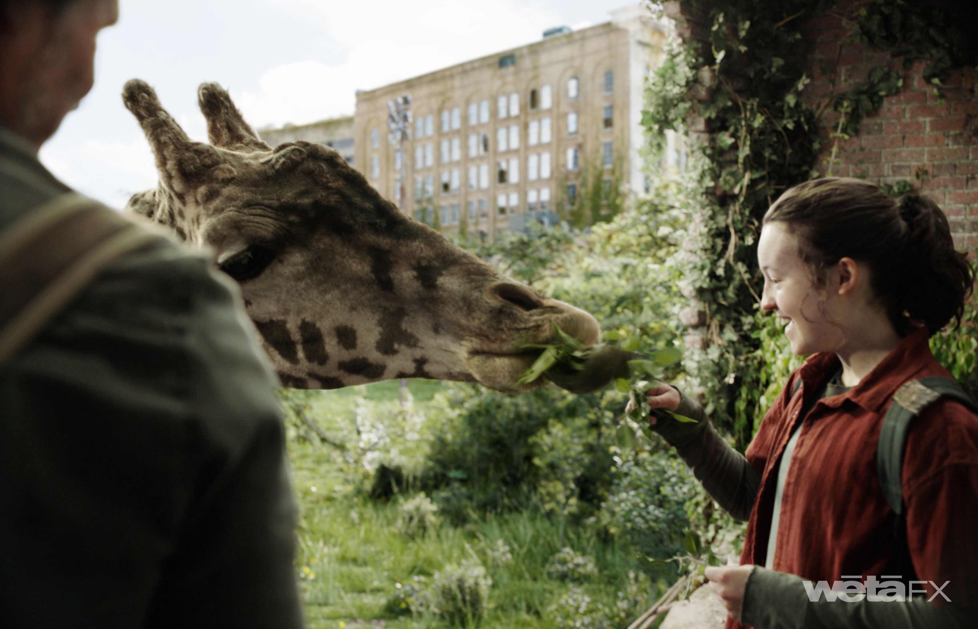 Not only was the giraffe scene shot entirely in Calgary Zoo, but the entire series was shot in Canada, which makes the work done by Wētā that much more impressive. The company transformed and extended environments and sets, such as popular Boston landmarks like The Bostonian Museum and Faneuil Hall, which appeared in episode two, “Infected.” The company said it also aged buildings throughout Colorado University.