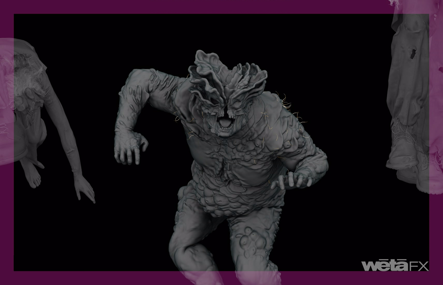 Also, in the second episode, Wētā said the team replaced some of the live-action clickers while other scenes were either practical or had partial CG head replacements to make the fungus prosthetics look more realistic by adding light transmission and sub-surface scattering.