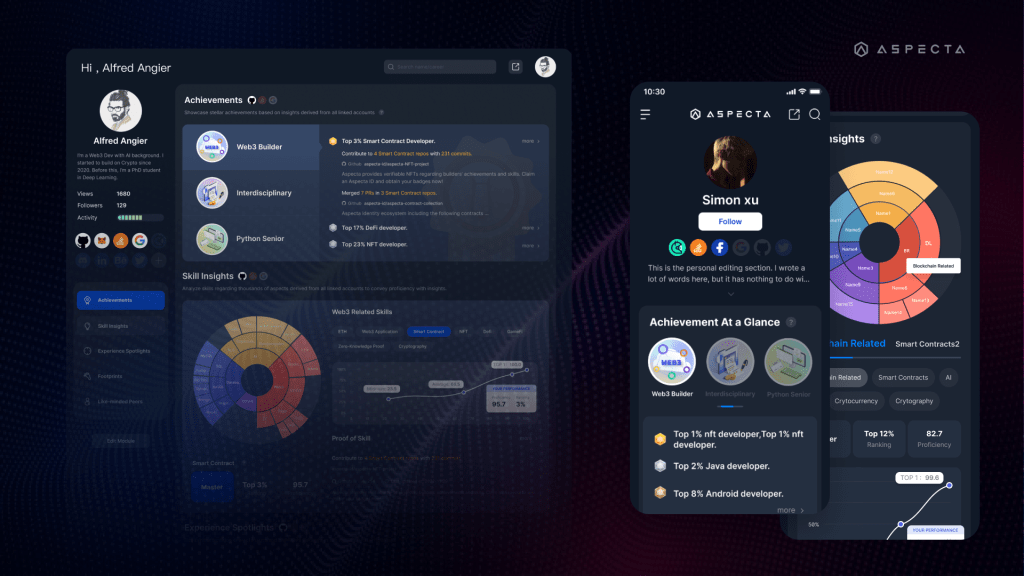 Aspecta is currently integrated with GitHub, so when users sign in with their accounts on the code hosting site, they receive an automatically generated identity page with all their technical achievements that look sort of like a gamer’s trophy page. The platform has also included Google, Stackoverflow and MetaMask in its data sources and is in the process of onboarding Twitter.