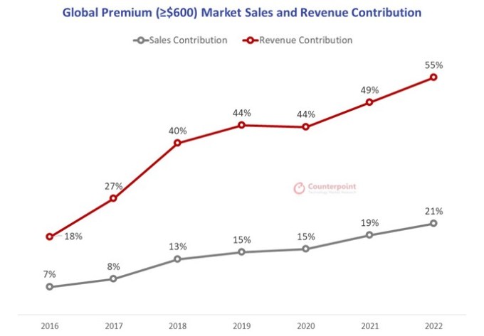 Counterpoint analyst Varun Mishra said that people buying premium smartphones were willing to pay extra for the longevity of a device and better features, which drove a 38% increase in sales of phones worth more than $1,000 in 2022 compared to 2021.
