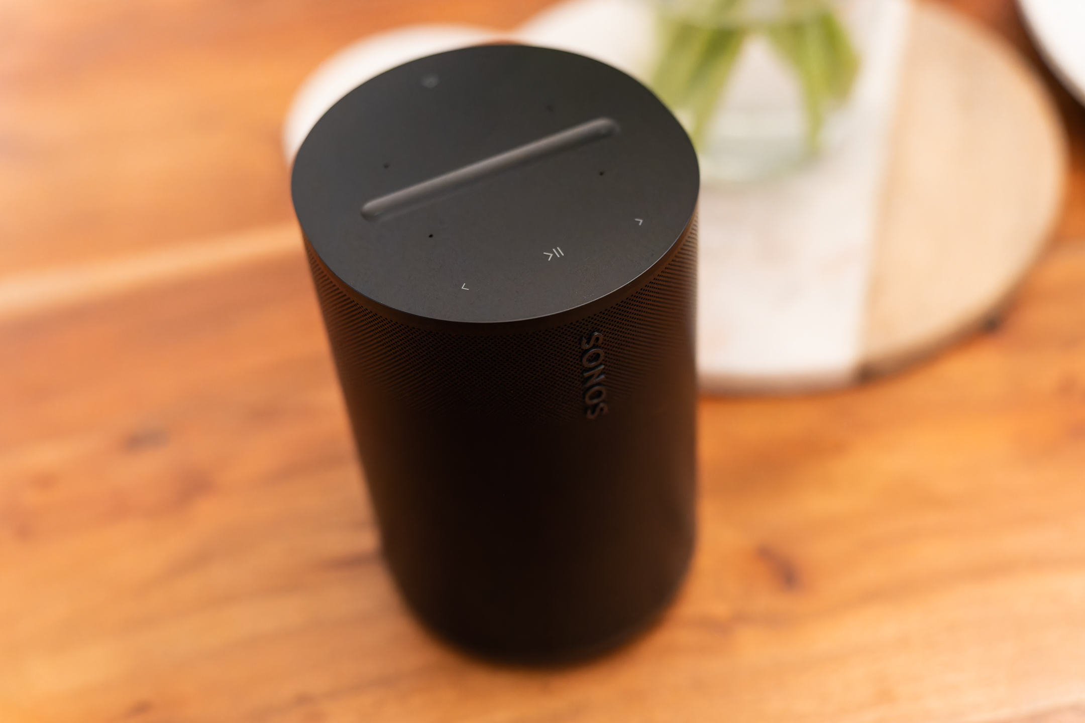 The Era 100 connects via Wi-Fi to your Sonos system, and includes Apple AirPlay 2 like its predecessor. It also has a mic and supports Sonos’ own voice control as well as Amazon Alexa (unlike on older devices, Google Assistant is no longer an option). It has a physical switch for disabling the mic on top of the touch control mute from prior models, and the redesigned top touch surface has a dedicated volume slider, play/pause and skip controls.