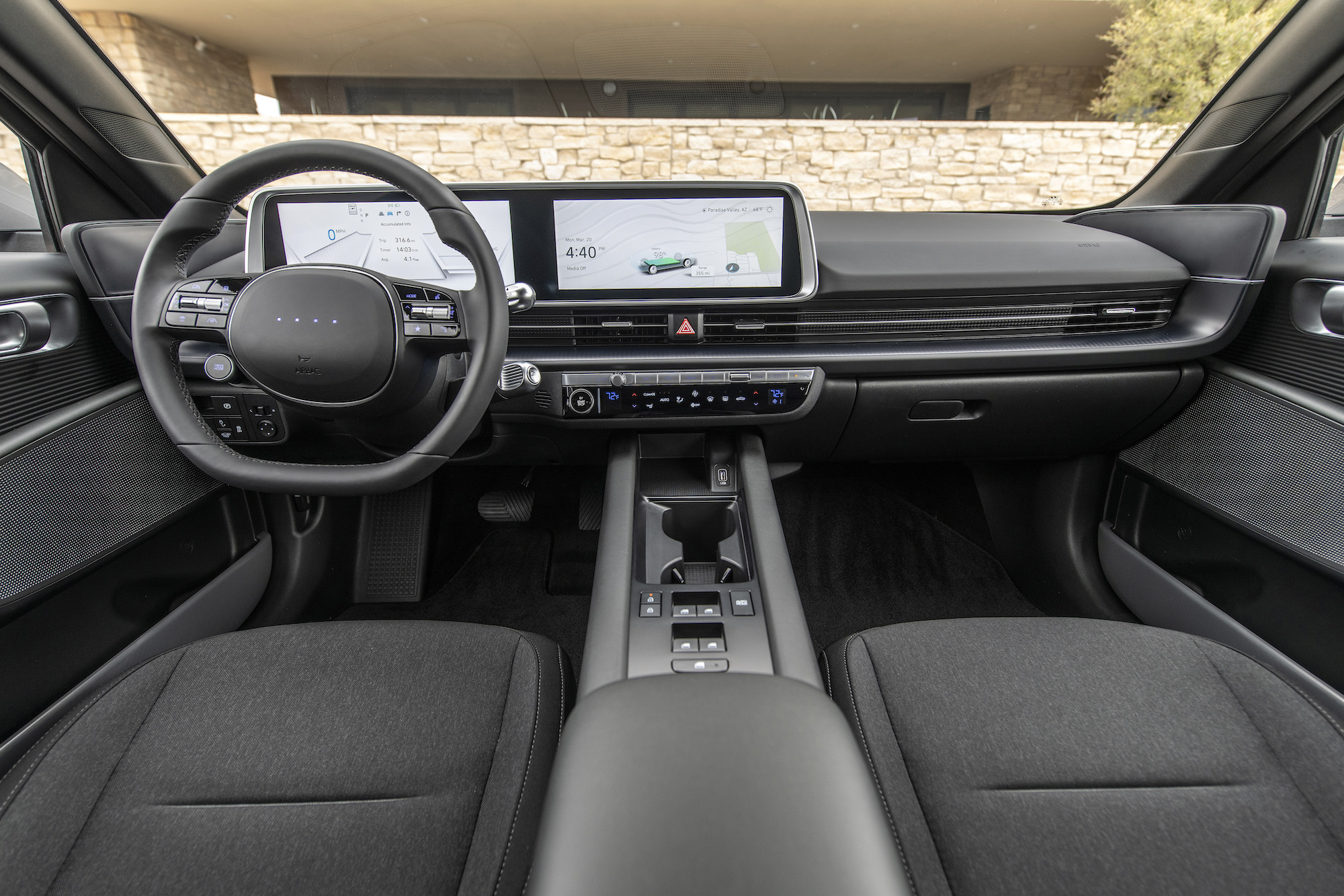 While the wheelbase of the Ioniq 6 is 116.1-inches, it’s shorter than the Ioniq 5 by two inches. Surprisingly that doesn’t translate to a cramped interior, thanks to Hyundai’s thoughtful layout and interior design inside the cabin. As an example, designers minimized the size of the door armrests to provide more hip width inside the vehicle. There’s plenty of room in the back seats for a six-foot person to ride comfortably for a good long while, too.