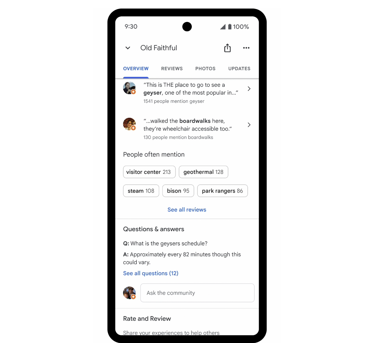 Google Maps is also making it easier to quickly identify the most popular places in a park, such as attractions, campgrounds, visitor centers and trailheads. If you’re planning to visit a national park, you can search for the park and see photo highlights for key attractions from the Maps community. You can tap on the photos to get additional information, like videos and reviews.