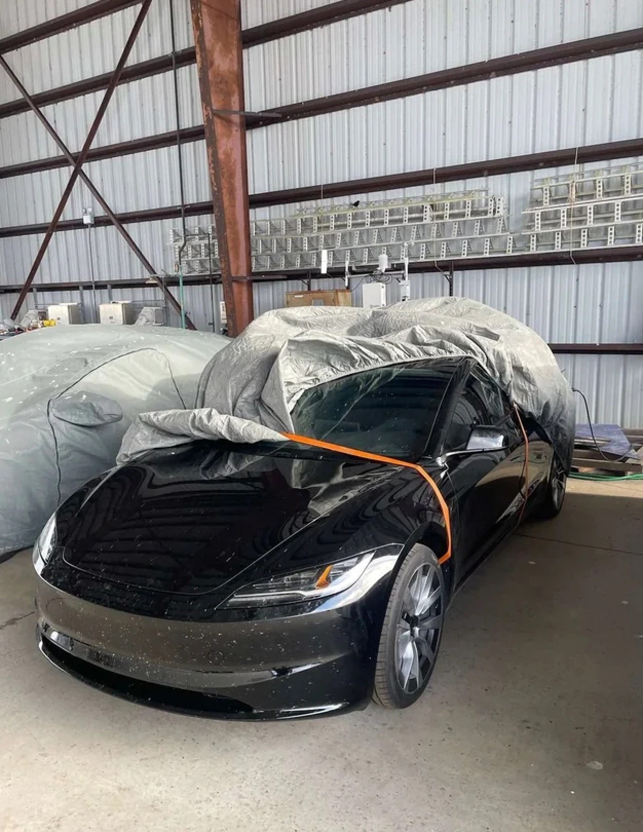 It’s unknown if the vehicle featured here is the next Model 3 or perhaps a rolling design prototype. But one thing is clear: This particular vehicle has some miles on it. Look at all the bugs.