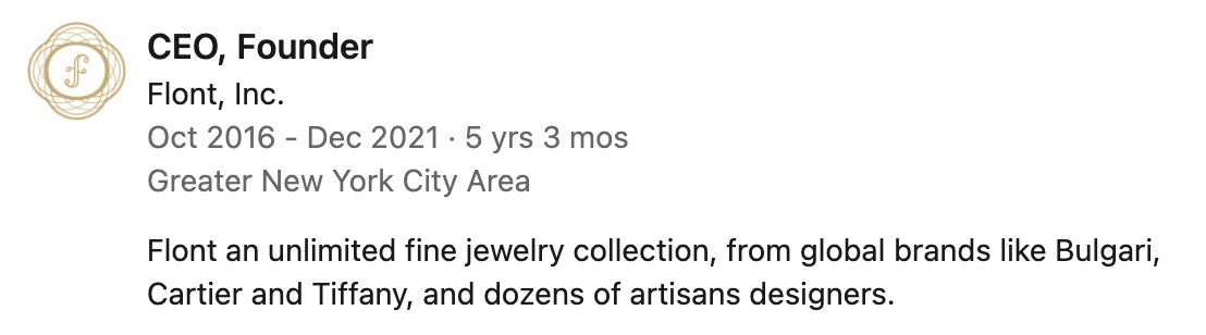 It’s truly mind boggling to me that Kinney’s five years of experience in the jewelry industry didn’t warrant a mention on the team page of a company that’s doing something related to diamonds.