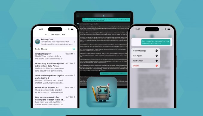 One example is Short Circuit, an app developed by Joe Fabisevich, a former Twitter employee turned indie developer. The app lets you chat with a bot named Shorty. It comes with suggested prompts for workout plans, meal plans, writing funny songs and discovering fun facts about a subject. It also lets you use the “Hey Siri, Ask Shorty” command to ask questions through voice.