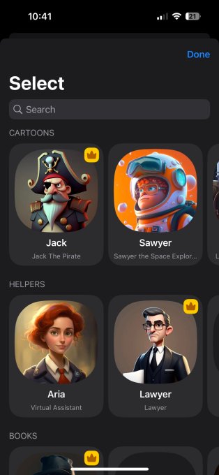The app itself is structured like a messaging app, he says, allowing users to have multiple conversations with different AI chatbots at the same time. The AIs themselves are powered using OpenAI technologies — specifically GPT-3.5-turbo, we’re told. Meanwhile, the artwork for the characters was created using Midjourney.