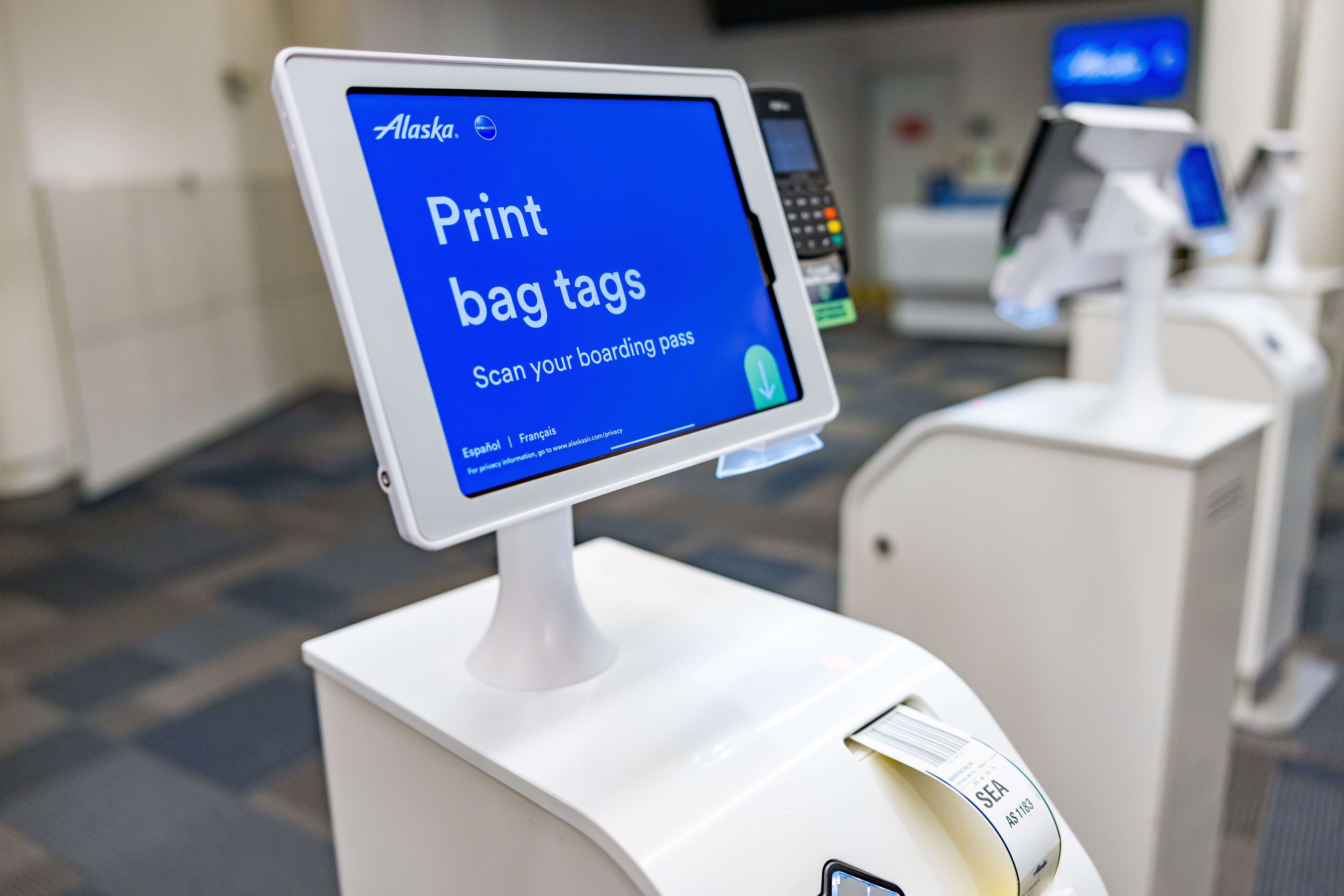 Alaska will encourage fliers to check in at home or on their smartphones and instead of the kiosks, the airline will introduce single-function, iPad-based bag tag stations, where fliers can scan their boarding passes to get a bag tag, and automatic bag drops. These bag drops will also mark the first time Alaska will use biometric data to authenticate travelers.