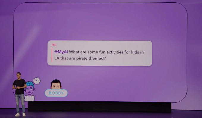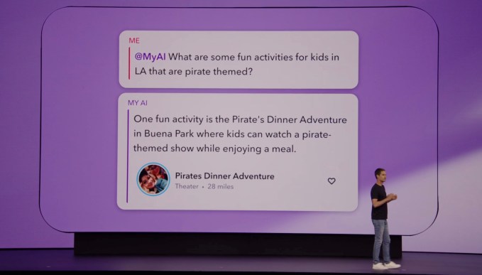 Snapchat’s AI chatbot is now opening up to a global audience, the company announced today at its Snap Partner Summit. Initially launched in February, the feature originally allowed Snapchat’s paid subscribers to chat with an AI chatbot powered by OpenAI’s GPT technology directly in its app. Now it will be available for free. To date, users have sent nearly 2 million messages per day using the chatbot, Snap noted. With today’s global expansion, the feature is also being upgraded with new functionality, including the ability to add My AI to group chats, get recommendations for places on Snap Map and Lenses, and share Snaps with My AI and receive chat replies.