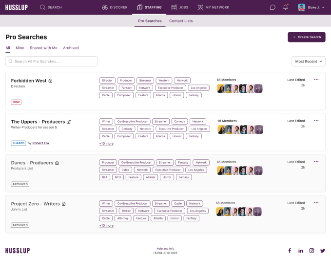 In the future, the company plans to launch more web-based features, H Schuster, founder of HUSSLUP, told TechCrunch. This includes “Project Rosters,” a feature that would enable users to take a list of their hires and generate call sheets, anonymized statistical reports for tax incentives and more.