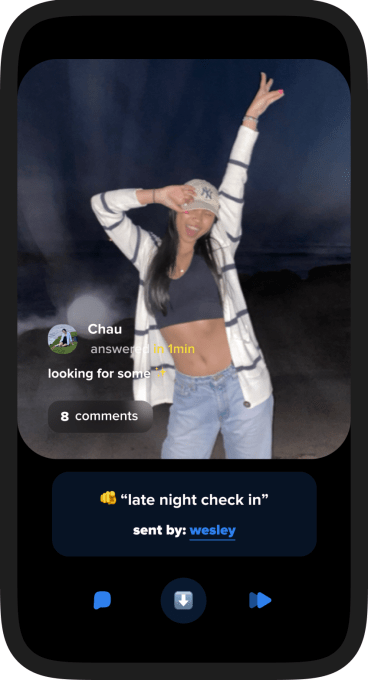 “We think it’s very much like BeReal meets TikTok,” Spraggins says, noting how it combines both the system trigger found in BeReal with TikTok challenges, but in a more friend-centered app. While that may feel a bit derivative, it’s worth noting that BeReal has been losing steam — recent data from Sensor Tower indicate that BeReal’s monthly downloads have been slipping. In addition, daily usage has dropped 61% from its peak, down to 6 million users in March versus 15 million in October, Apptopia data found.