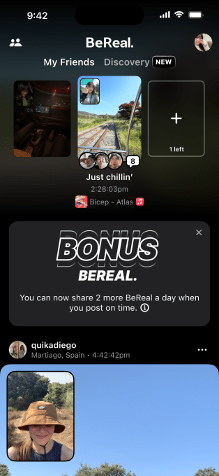 The Bonus BeReal feature almost feels like a concession that many users are just posting late anyway, since the consequences for missing the two-minute window are so minimal. Now, users will be incentivized to post on time if they can, since they’ll get not one, but two Bonus BeReal posts. It’s a clever way to boost engagement, but it could also shift the app’s culture.