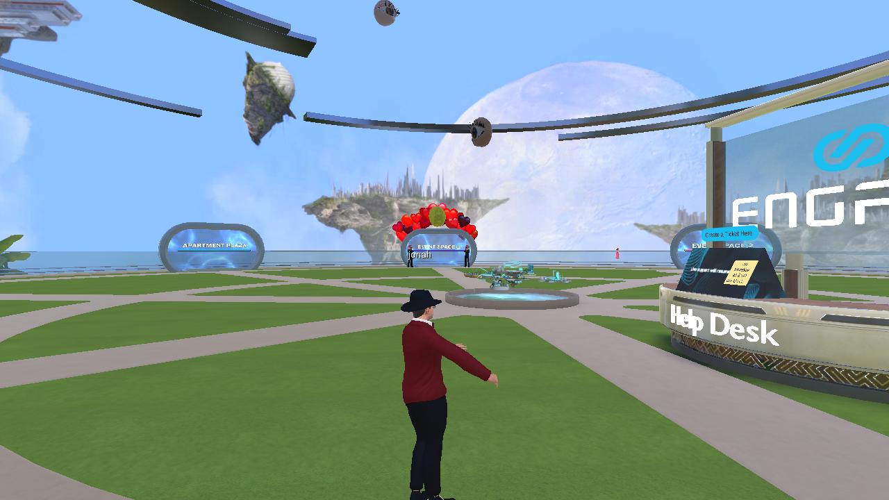 I tried a few times to catch the live support, and when I finally did, it was anticlimactic. At first I was excited to see another person, not just a random floating avatar, in the space after days of exploring the virtual ghost town alone. I asked him where he was based, if he wore the headset at all times or if he got a ping when someone showed up at the help desk, and what kinds of things he could help me with. The man, bless him, was nervous to be questioned so, a feeling that was clearly exacerbated when I told him I was a journalist. He politely told me to contact Engage for answers to my questions.