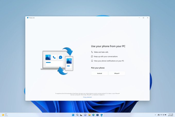 iMessage is finally coming to Windows. Microsoft today announced that Phone Link for iOS is now rolling out to all Windows 11 customers, allowing iPhone users to make and receive phone calls, send and receive messages via iMessage, access their contacts and see their phone’s notifications directly on their Windows PC. The feature had previously been available as an early preview to Windows Insiders.