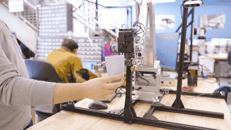 Interestingly, the project builds on actuators developed for the school’s mini cheetah robot, which were designed to help it react to uneven terrain on the fly. The new system is built around an arm with two multi-joint fingers. There’s a camera on the base and sensors on the tips that record feedback. The system uses that data to adjust accordingly.