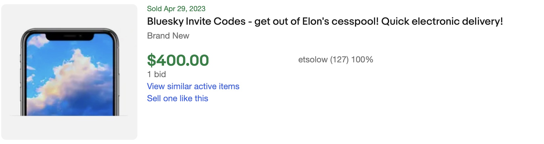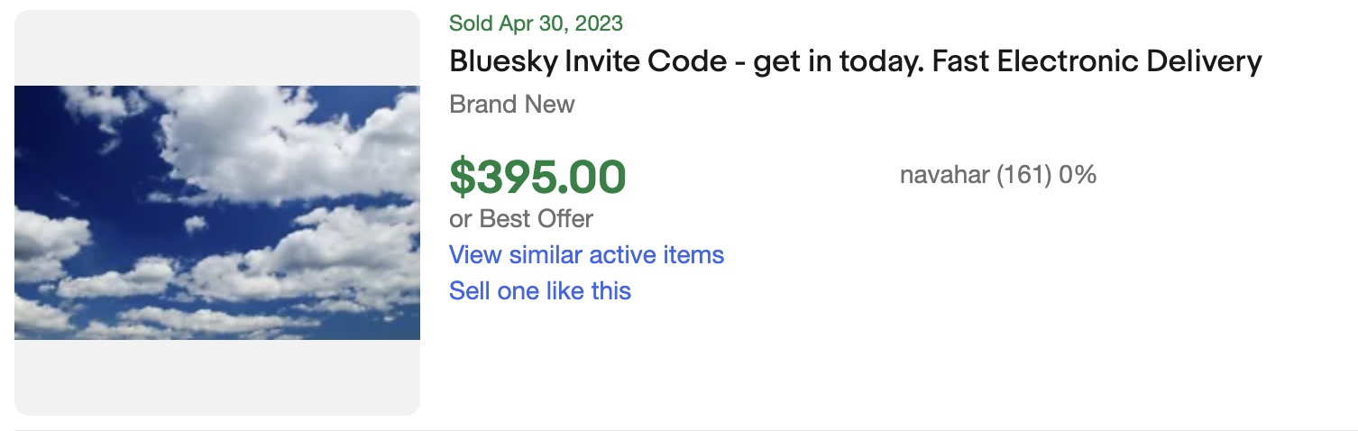 (Above: sold invites. Below: Bluesky invites for sale as of May 2, 2023).