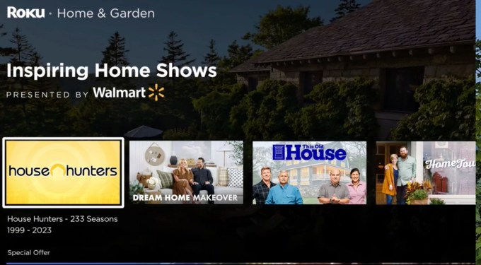 The company also introduced new discovery experiences that allow brands to host content in areas like Home & Garden and Sports experiences that curate content from across TV on the Roku Home Screen. Now, when users turn to Roku search, they may see a featured collection that’s “presented by” an ad partner — for example, Walmart was shown “presenting” the Home & Garden collection.