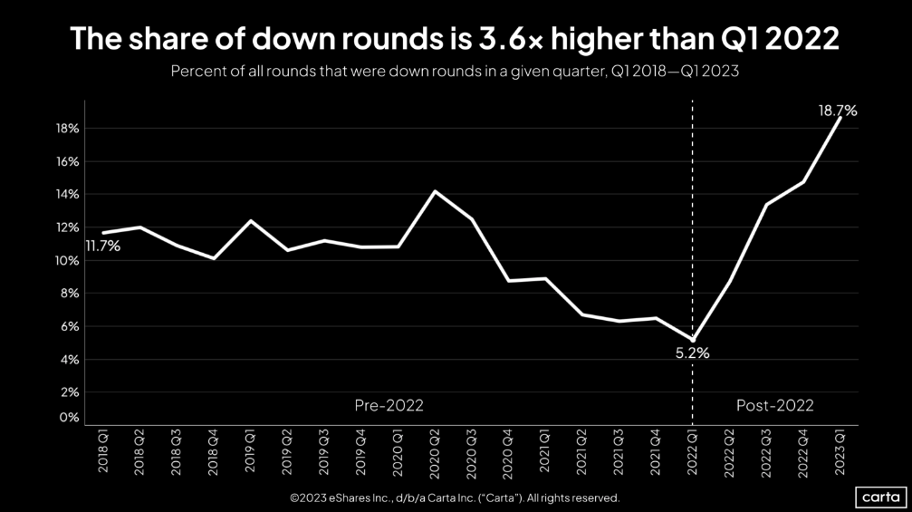When we consider that 18.7% of rounds that Carta saw in Q1 2023 were down rounds and that the same figure was just 5.2% in Q1 2022, what’s terrifying is that the number could get even worse.