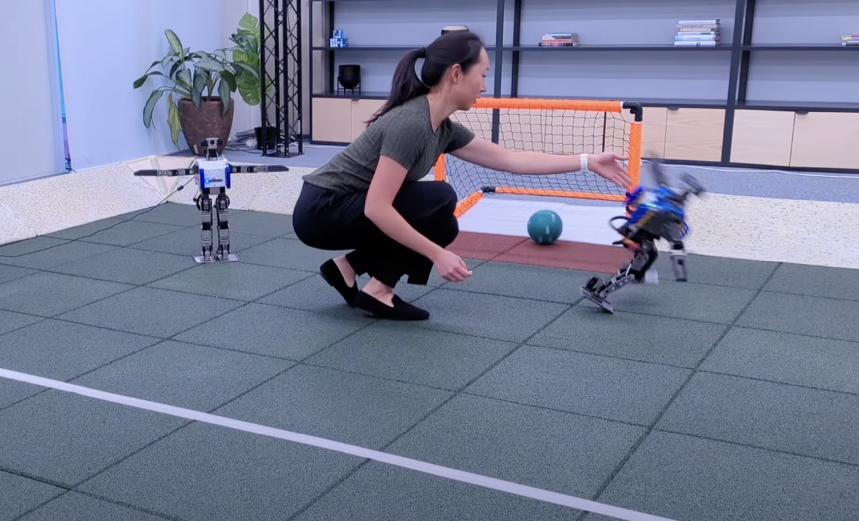The research examines how deep reinforcement learning works with small humanoid robots. Its authors at DeepMind note:
