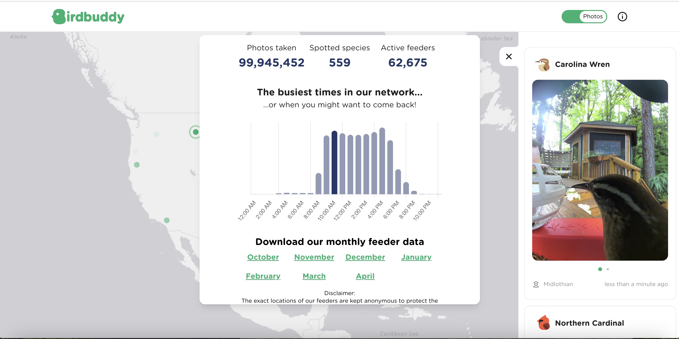 Another of Bird Buddy’s bigger goals is to make its bird feeder data available to researchers. This is something it’s already working on, as it now makes the data available to the public for download through its Bird Buddy Heartbeat website in addition to a stream of live sightings. But conversations with universities, bird groups and other researchers are still in the early stages about what sort of data they need and how Bird Buddy can better contribute.