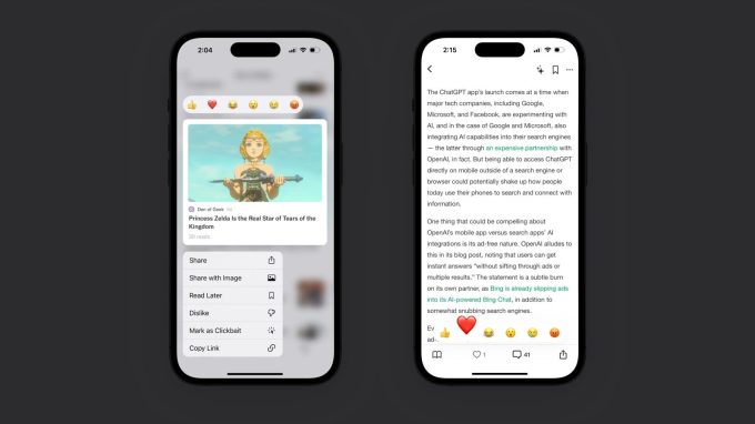 The other two features are also nice-to-haves. Users can now use one of six emojis like “thumbs up,” “heart,” “laughing face,” “angry face,” “amused face” and “sad face” in response to an article.