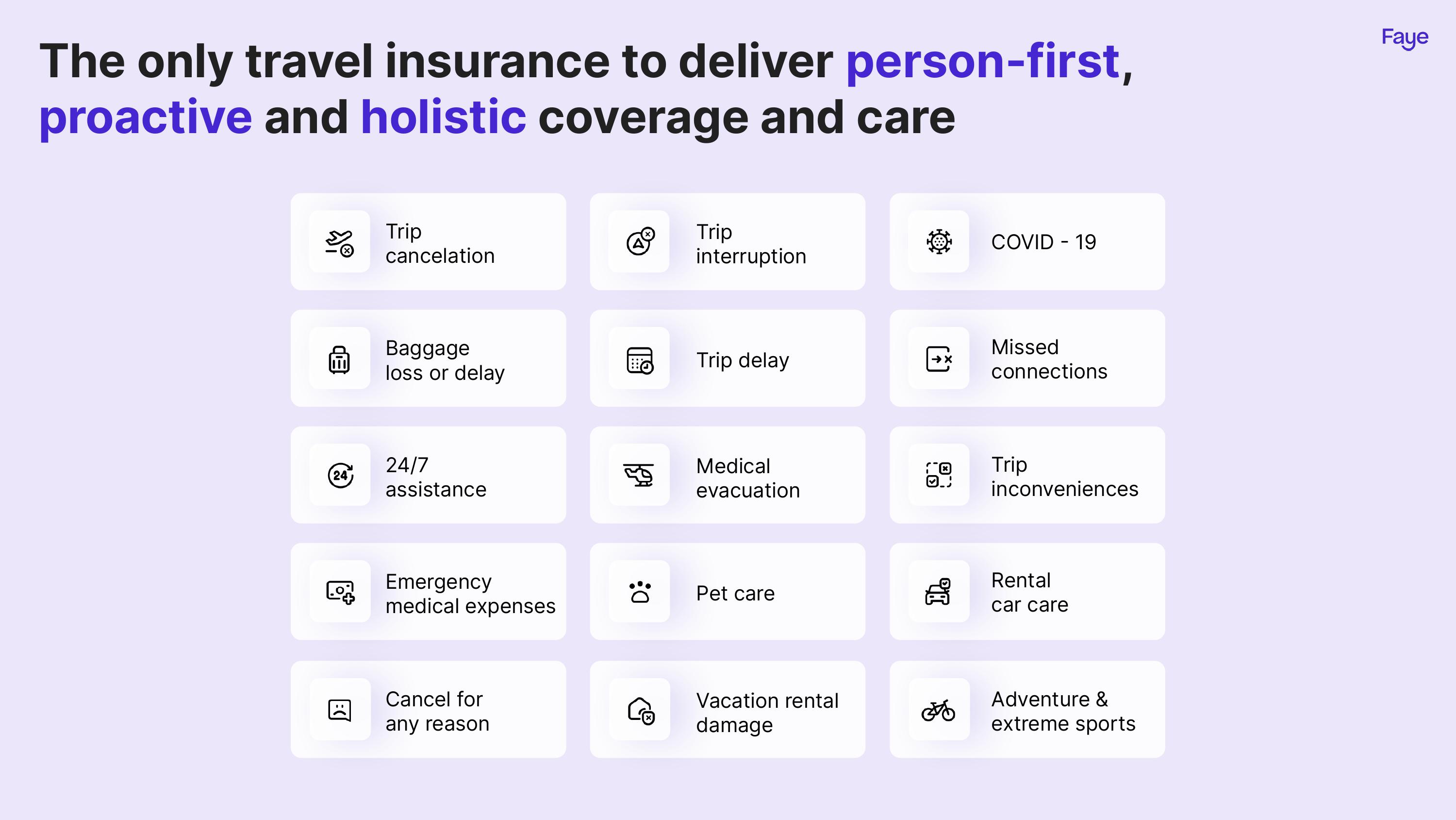 Faye could learn from that: Does it sell peace of mind? Does it guarantee a better trip? Those are the emotive selling points that help sell its product. An investor wouldn’t care whether “trip inconveniences” or “pet care” are part of the package. They want to see how customers connect with the overall product offering.