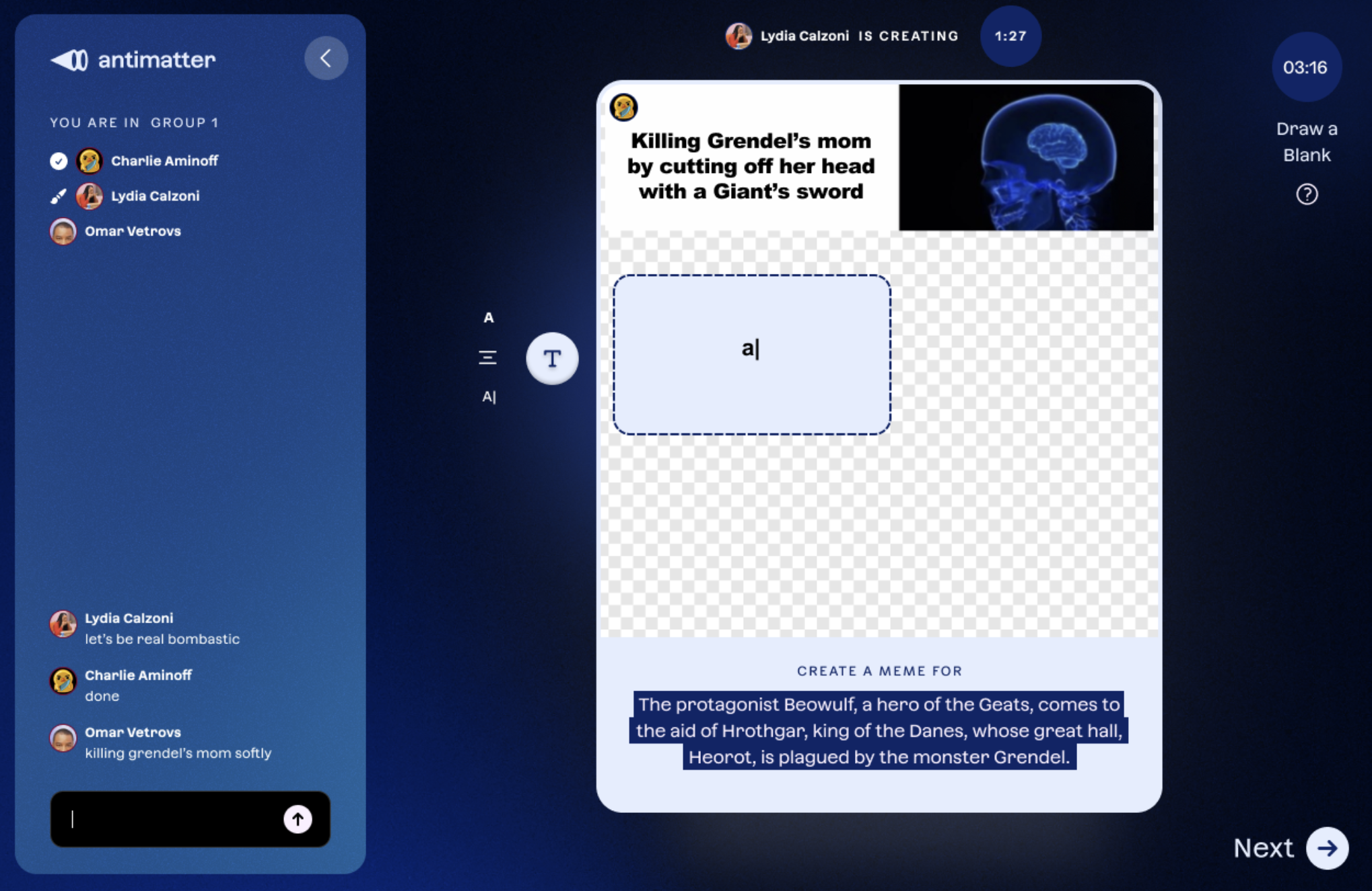 Antimatter is an edtech company that operates under a simple, enticing premise: If a student really understands a topic, then they’ll be able to make a meme about it.
