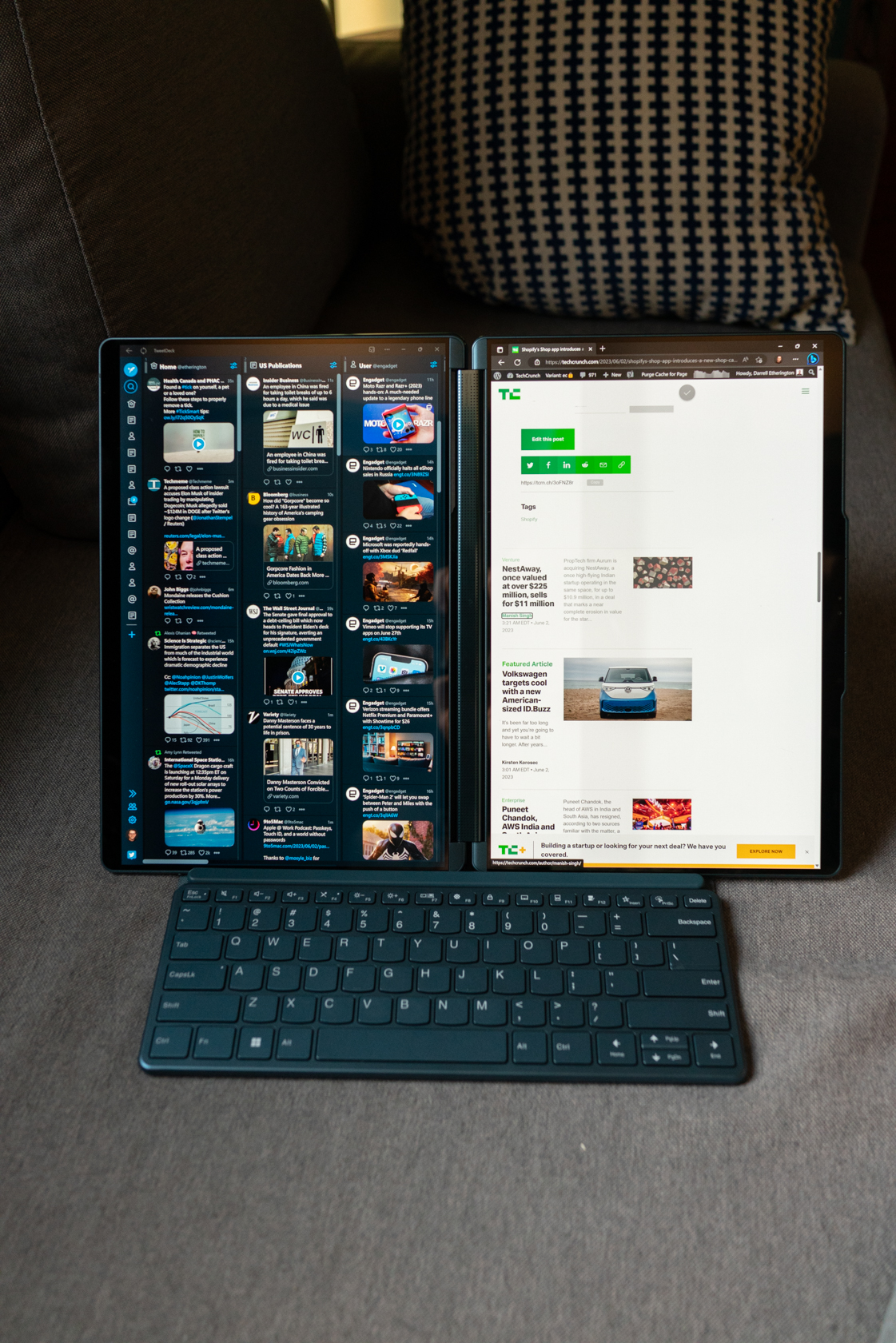 The Lenovo Yoga Book 9i looked a bit like a stunt when it made its official debut earlier this year — ambitious, certainly, but practical? That didn’t seem likely. Now that it’s here, though, I can say that it is actually eminently practical, and in fact ranks as my favorite notebook to use, period. That’s factoring in the relatively meager battery life I mentioned, and some other very minor concessions to the form factor like not being able to close the lid on the hardware keyboard when it’s magnetically attached to the bottom display.