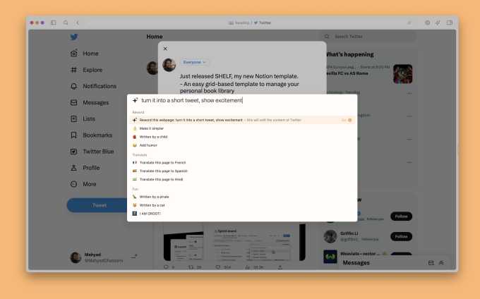 Additionally, Airis can rewrite or reword sentences or paragraphs. There are pre-written prompts like “Make it simpler,” “Written by a child” and “Add humor”. You can also use your own prompts like “Write this in 200 words.” There are also some fun options like “Write it like a pirate” and “Write it like a cat.” SigmaOS’s new assistant can also effectively translate articles and webpages in multiple languages using the GPT-3.5-Turbo model.