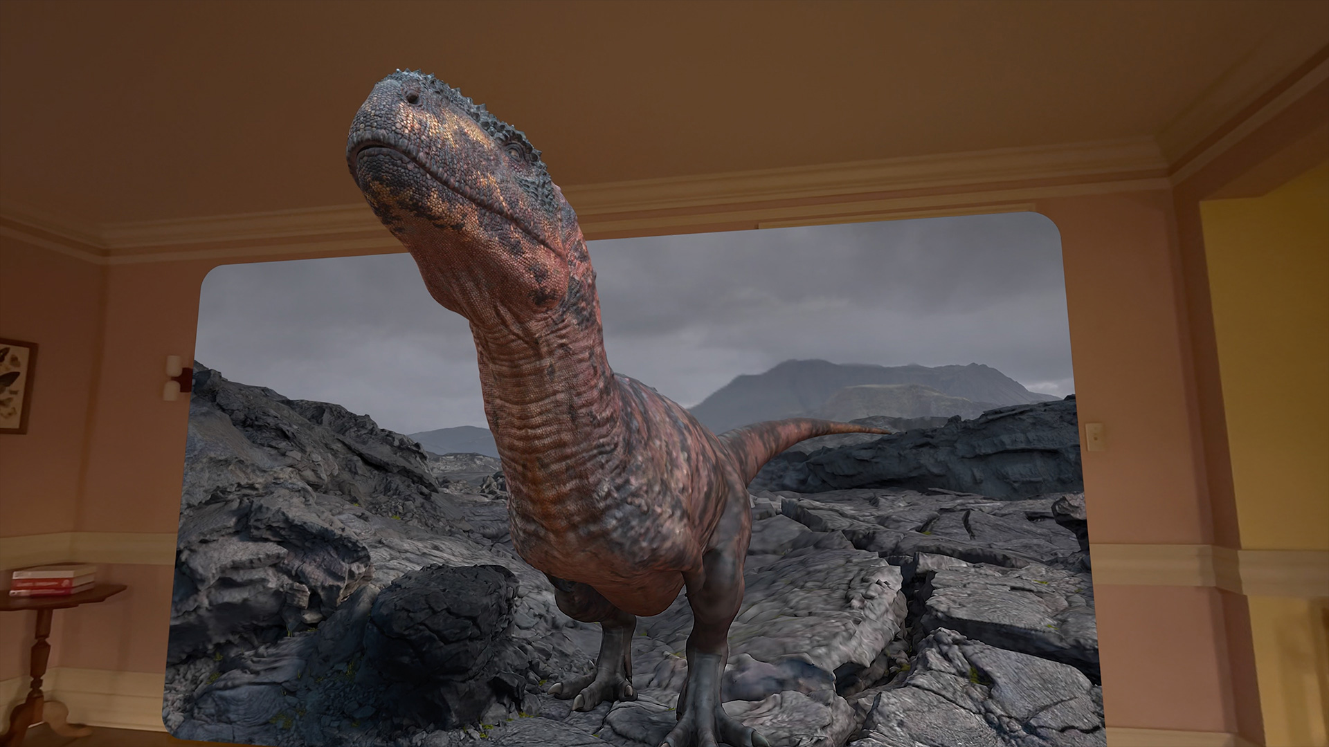 The opaque display lets the room darken around images. In fact, the company is really pushing 2D photos taken from the iPhone here. There’s a 3D camera built in, as well, allowing users to capture “Spatial” photos and videos. There’s a movie theater option, too, taking advantage of the illusion of a full, large screen. There is gaming here, but rather than an actual VR experience, it’s a large screen projection, with standard games.