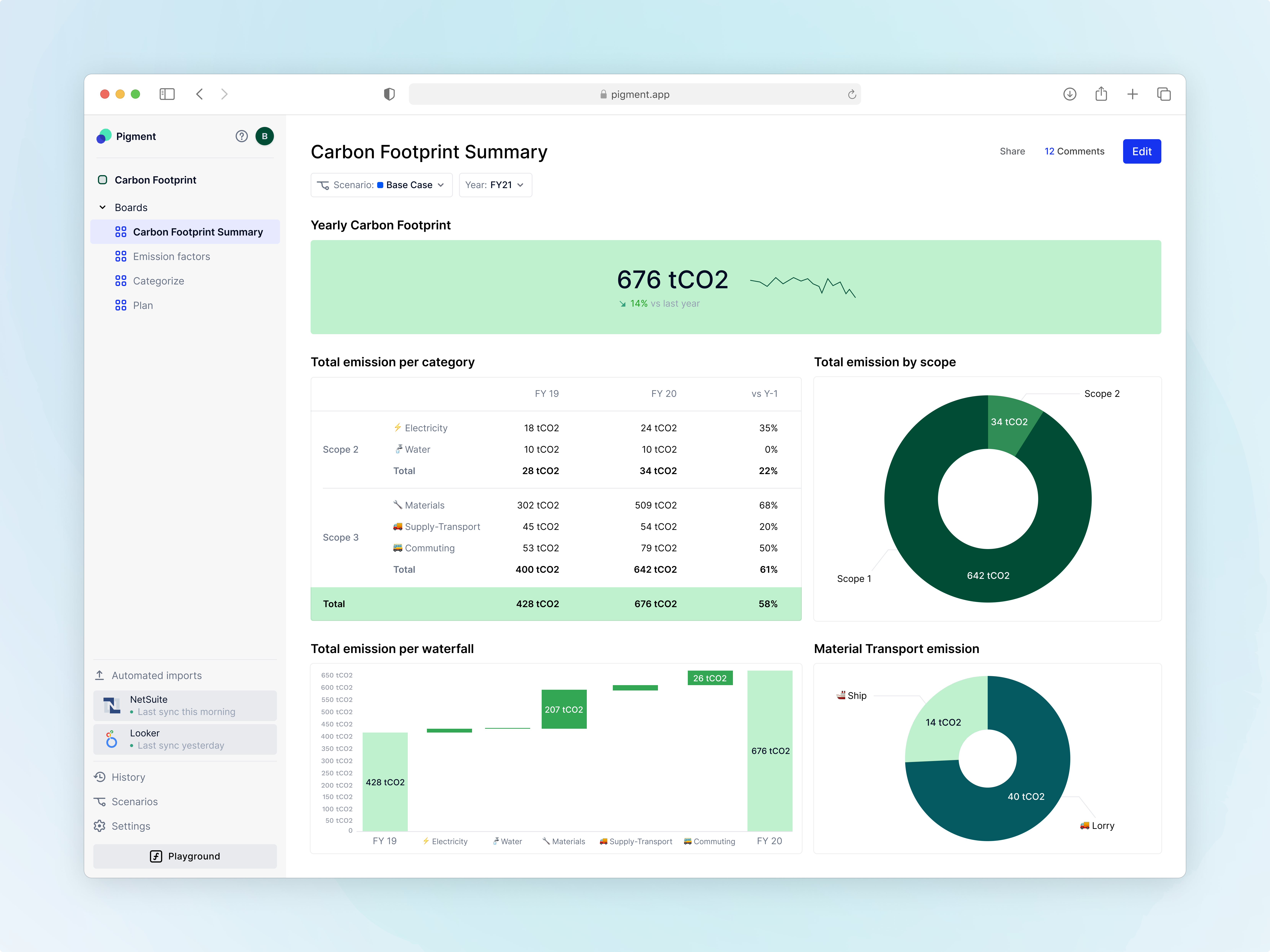 Just like Microsoft Excel, Pigment wants to be a generic tool. If you want to use it for carbon accounting and track your total emissions, you can start importing data and create a dashboard for that use case. Pigment also recently added a new spreadsheet view so that Excel users feel right at home when they are typing formulas.