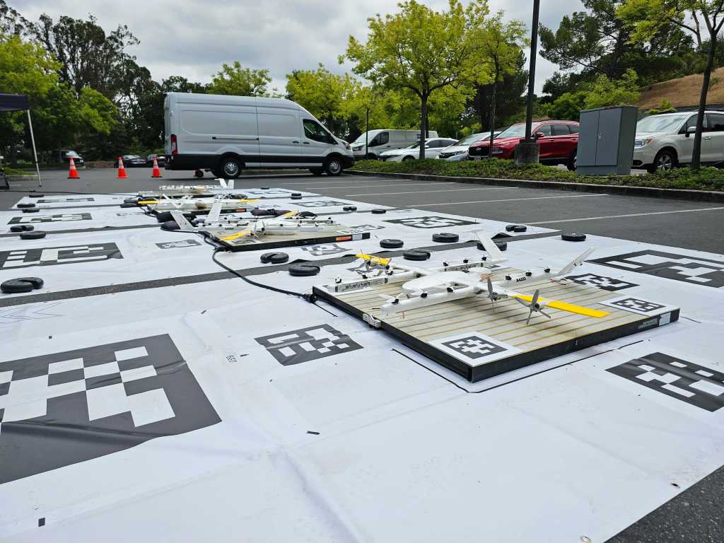 Various early Wing prototypes hang from the ceiling, bringing us close to something resembling its present-day craft. At the other end, the door is flanked by a Waymo car resembling a Mini Cooper or “New” VW Bug and Mineral’s agtech robotic, which was much taller in person than I’d anticipated. The system sits atop two large panels, leaving several feet of space in the middle, so it can cruise between crops to growth without damaging them in the process.