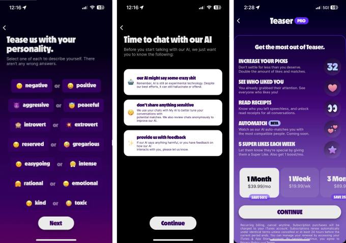 Teaser AI literally has AI in its name, and the most immediate difference between Teaser and any other dating app is its use of generative AI. But Liss doesn’t want to market Teaser as an AI app, but rather, an anti-ghosting dating app.